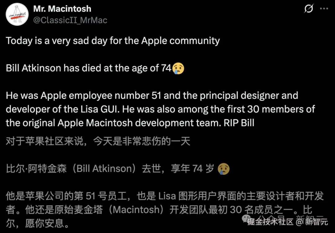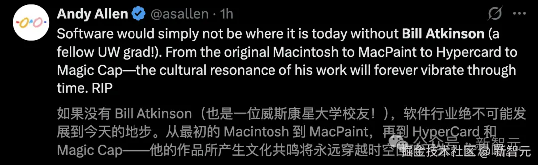 得知这一消息后,业内大佬纷纷发文缅怀 Bill Atkinson。