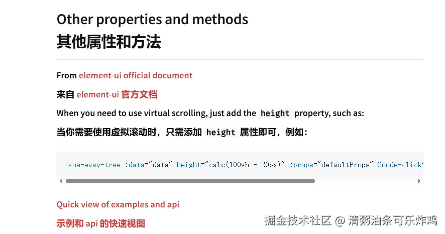 注意:该组件和element-ui的tree组件的prop是一致的(所以使用的使用可以参考element的tree组件),但是加了height属性时就会开启虚拟列表