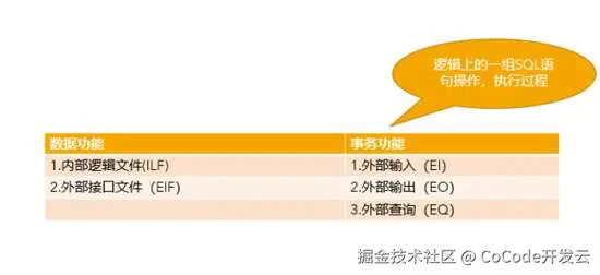 在IFPUG估算法中,数据与处理逻辑解耦。ILF 和 EIF 仅关注数据的逻辑结构,如数据实体、属性,不考虑数据的物理存储方式,如数据库表结构;而 EI/EO/EQ 关注处理逻辑,不涉及数据存储细节。