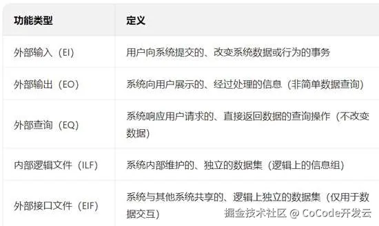 IFPUG 将功能分为 5 类基本组件,每类有明确的计数规则: