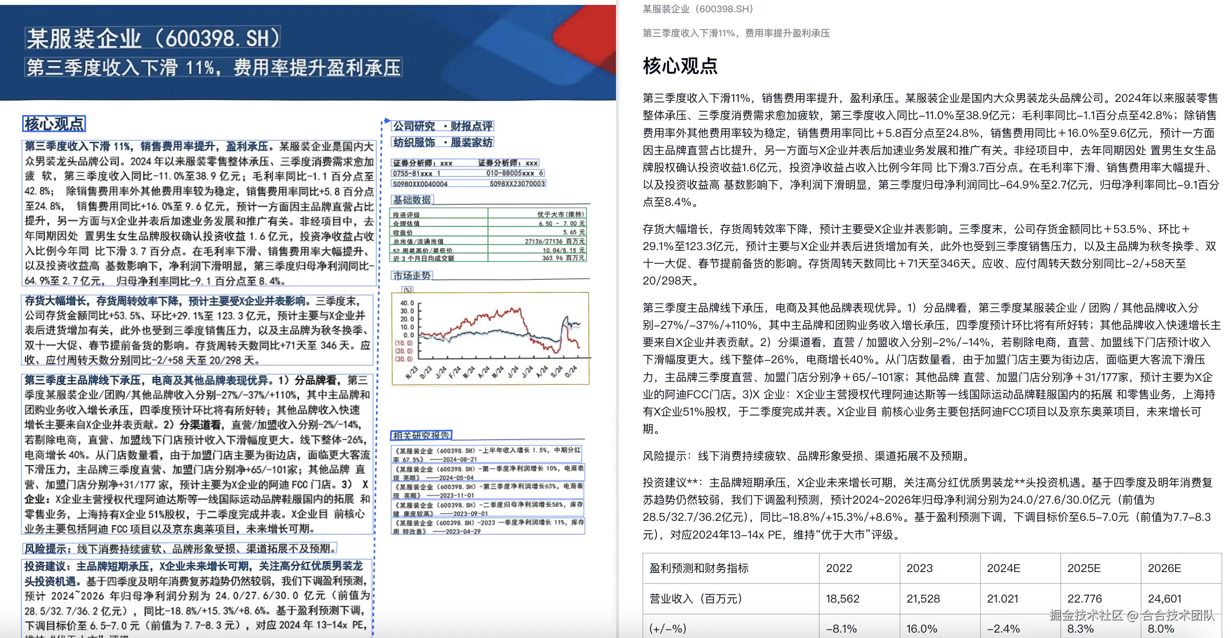解析企业年报、行业研报等金融长文档,助力投资方、分析师进行研究分析工作。