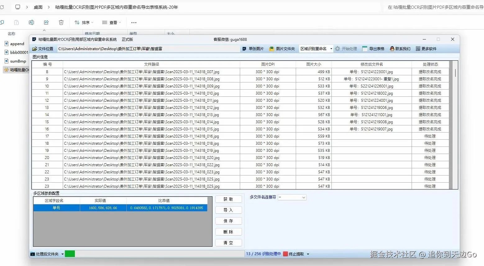 咕嘎批量OCR识别图片PDF多区域内容重命名导出表格系统:
