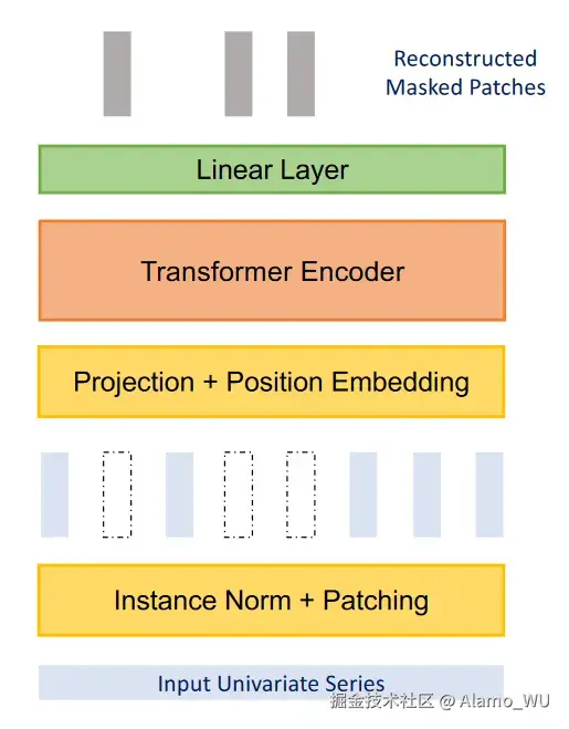 维度变换: 输入 [batch, channel, seq_len] → Unfold分块 → [batch, channel, num_patches, patch_len] (代码实现见)