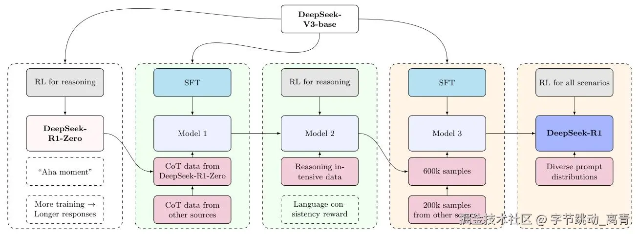 上图白底:DeepSeek v3-base -> DeepSeek R1-Zero