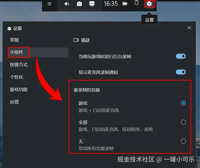 Xbox录屏是Windows系统自带的功能,比较适合录制游戏画面,但是也有不少人反馈录屏没声音。录屏为什么没声音?解决方法:按下 “Windows” 和 “G” 打开Xbox,点击 “设置” 图标,进入 “小组件” 选项。在 “要录制的音频” 里,选择 “全部” 。