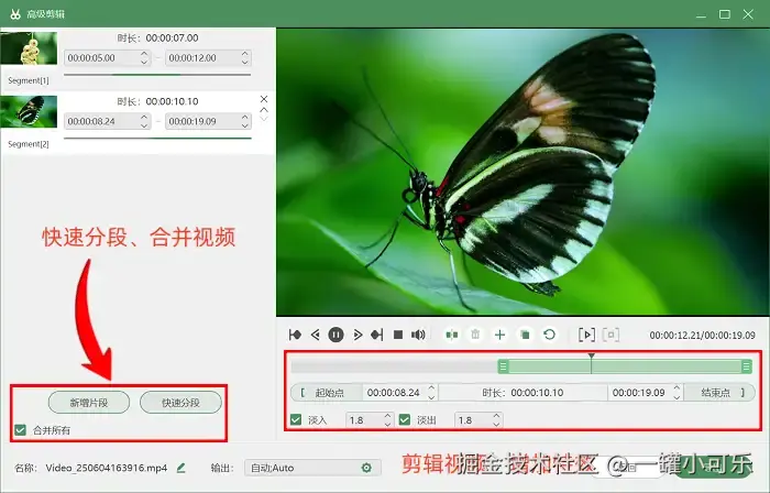 步骤3:录制好了之后,我们可以在预览页面简单查看录制好的视频是否有声音,如果你想给视频增加一点特效,可以点击 “高级剪辑” 进行设置。