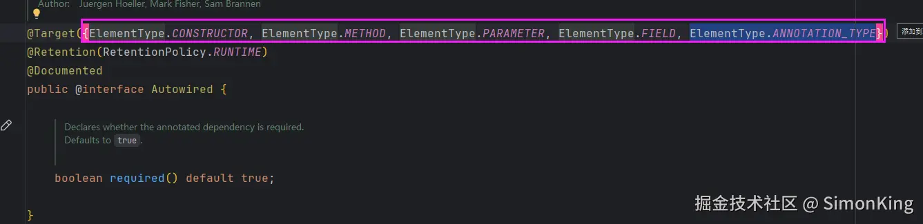 @Autowired注解提供了与自动装配协作对象中所述相同的功能,但具有更细粒度的控制和更广泛的适用性。可以作用在构造器、方法、参数、字段以及注解上。