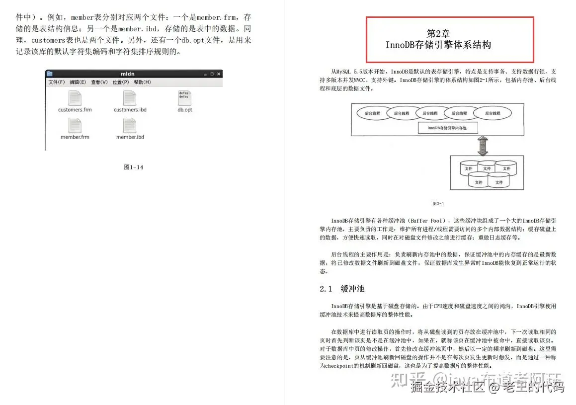 持多版本并发MVCC、支持外键。InnoDB存储引擎的体系结构如图2-1所示,包括内存池、后台线程和底层的数据文件