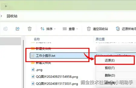 如果在使用笔记本电脑的时候,不小心删除了文件,我们可以在回收站还原误删文件,实现数据恢复。该笔记本数据恢复要怎么操作呢?在电脑的桌面上找到类似垃圾桶的图标,双击进入后在里面搜索需恢复的目标文件,选择后点击【还原】。
