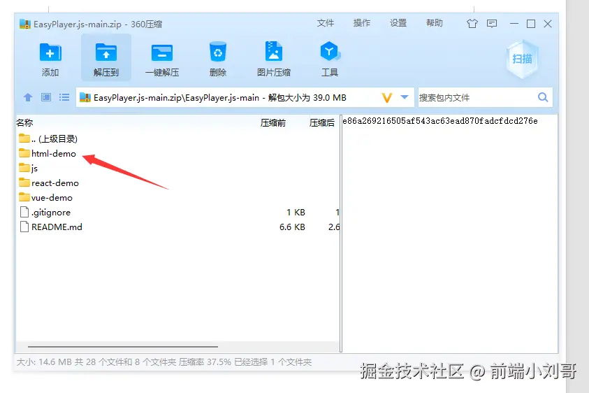 2)复制文件:解压完成后,打开播放器压缩包,找到其中的html-demo文件夹,将其整个复制到EasyCVR解压后的www文件夹内。