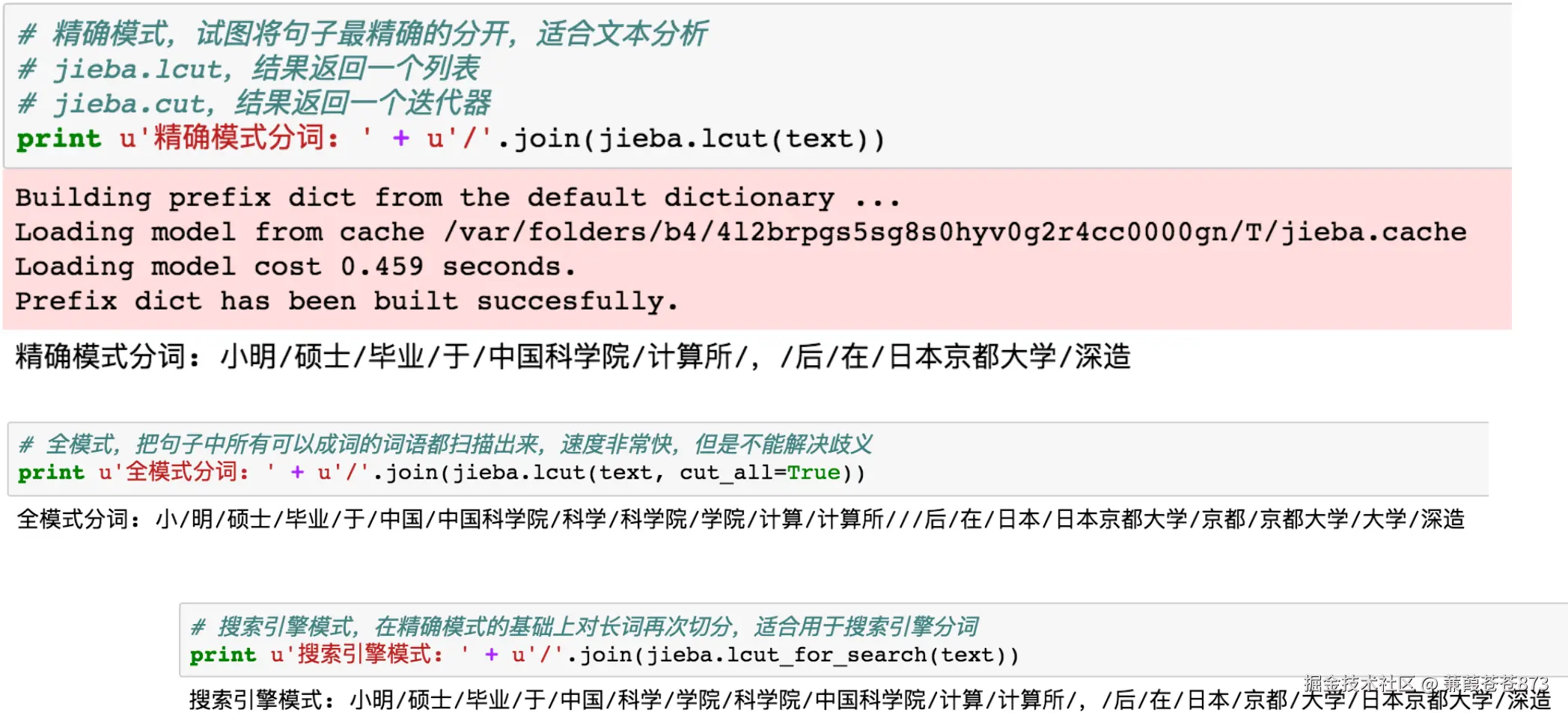 Jieba 提供了三种分词模式: