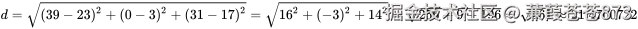 距离度量:常用欧氏距离计算电影之间的距离。例如计算《唐人街探案》(设其搞笑镜头 23 个、拥抱镜头 3 个、打斗镜头 17 个 )