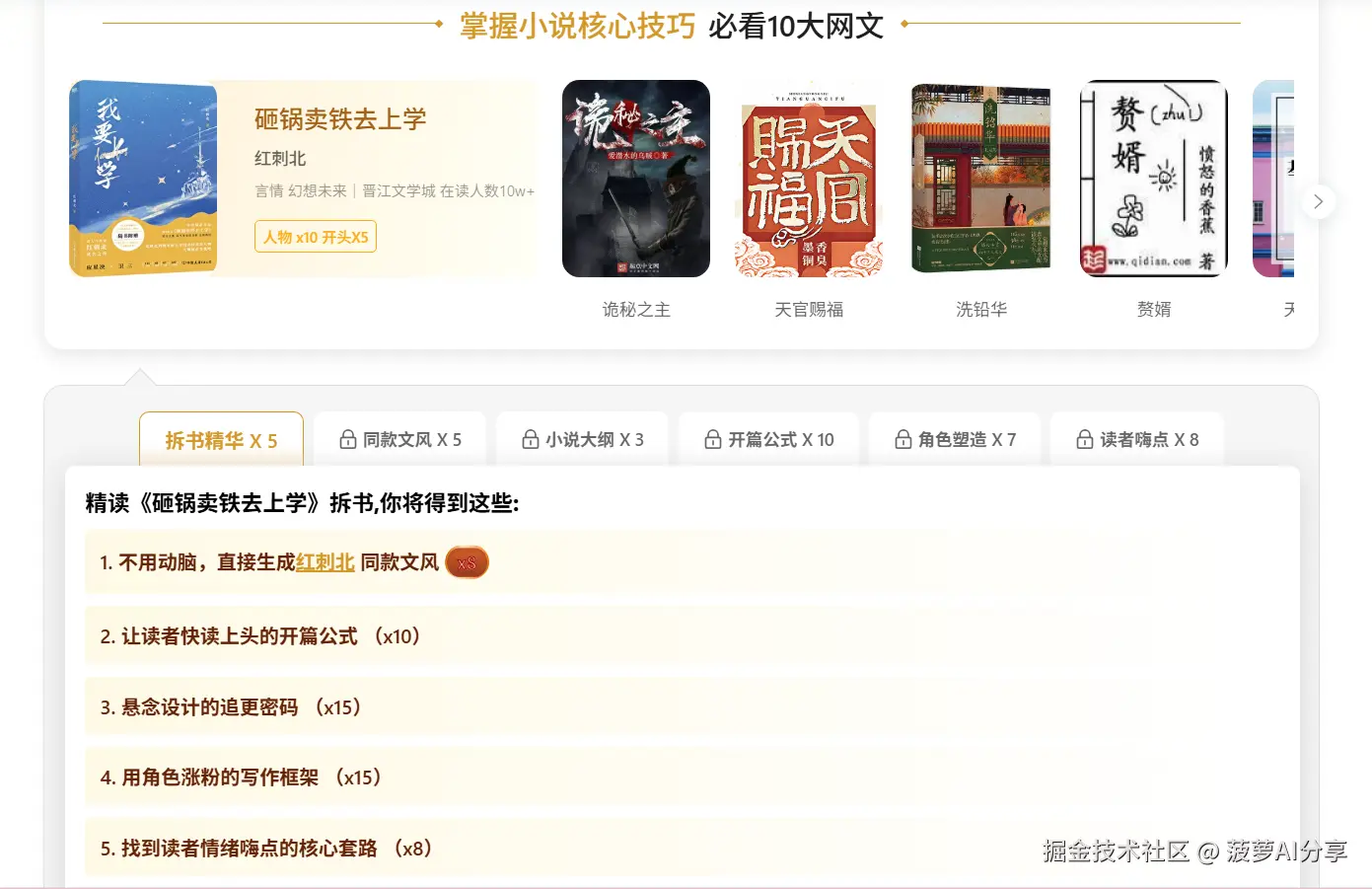 适合:需要快速学习网文套路的新手作者,或想批量产出素材的高频创作人