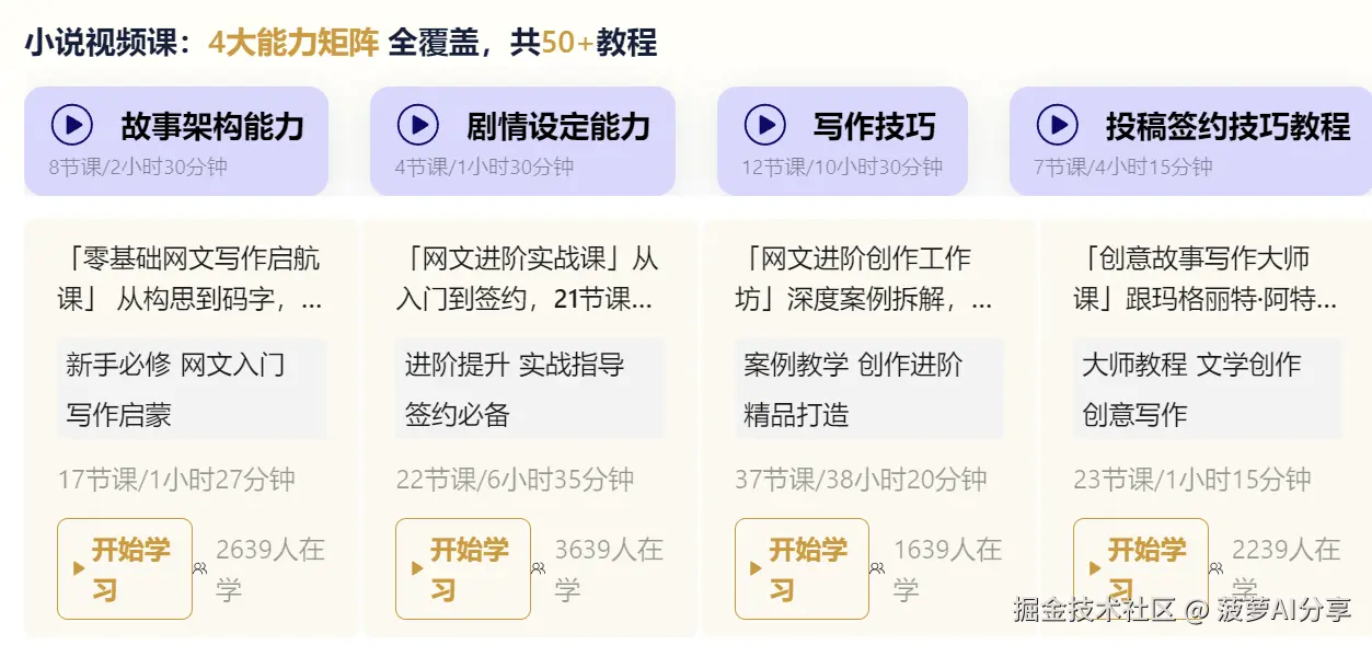 点击进去还可以看到小说视频课, 零基础15天看视频直接学会轻松写小说!
