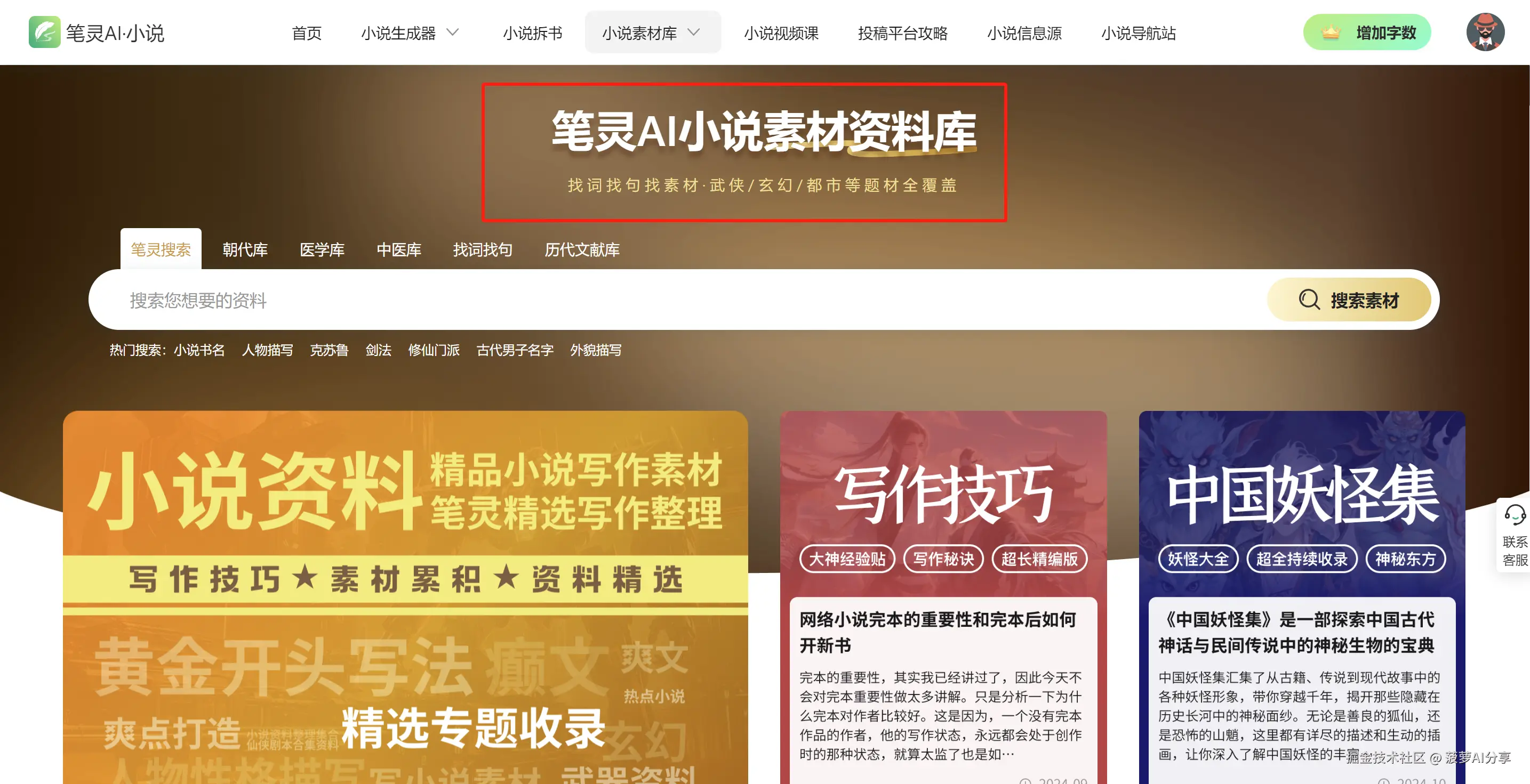 至于我为何说它适合作为后备知识库,原因就在于其小说素材库板块。这里汇聚了与写小说紧密相关的知识和资料,只要输入你感兴趣的关键词,就能迅速搜到大量有用且精简的资料。