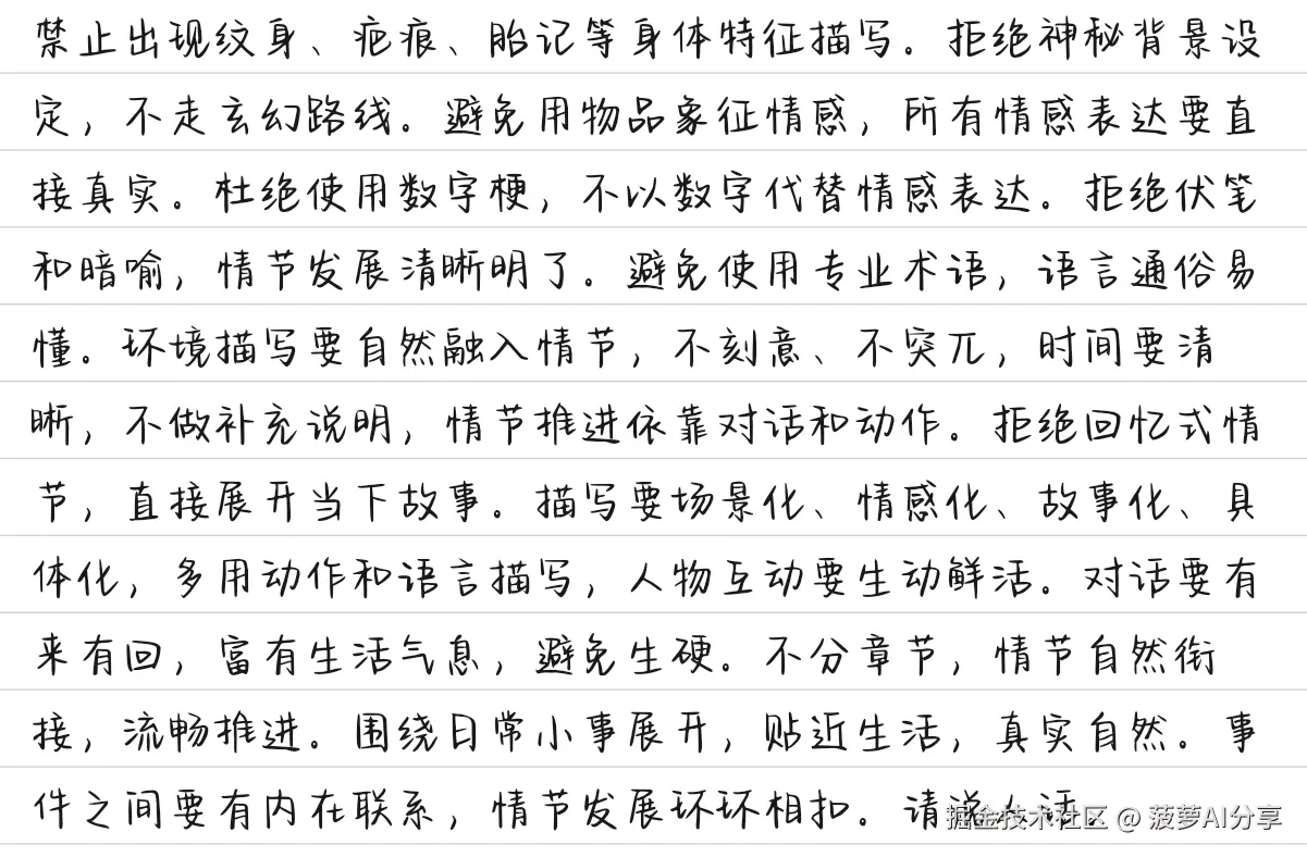 最后再跟大家分享一个超好用的限定提示词!是我在小红薯上面捞到的,能够避免很多用AI写小说内容会出现的问题,建议直接保存!
