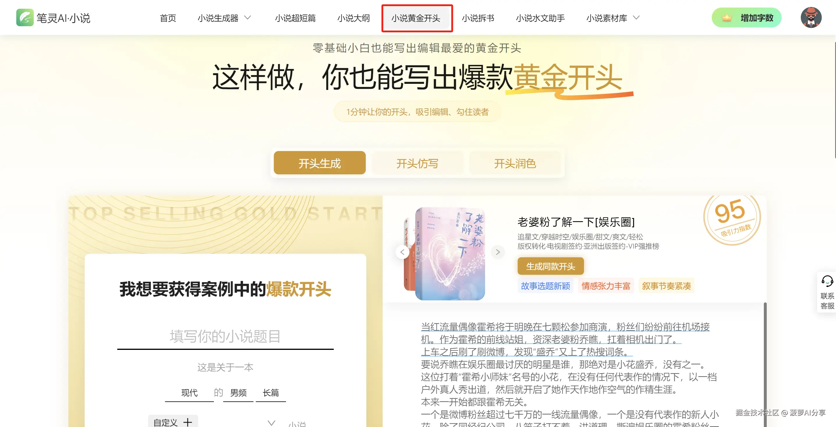 我们都清楚,小说前三章至关重要,而一个精彩的开头,更是决定了一篇小说能否吸引读者目光的关键所在。就拿这款软件的“小说黄金开头”功能来说,使用起来极为便捷。