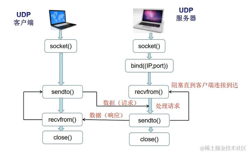 | recvfrom() | 接收UDP数据,返回值为一个元组(data,address),data表示接收的数据,address表示发送数据的套接字地址 |
