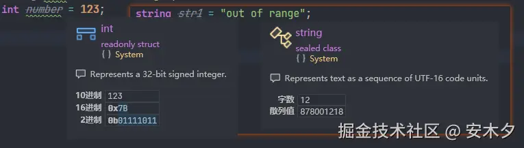 - 如果是数字类型,会显示十进制、十六进制和二进制形式,在进行位操作时非常有用。