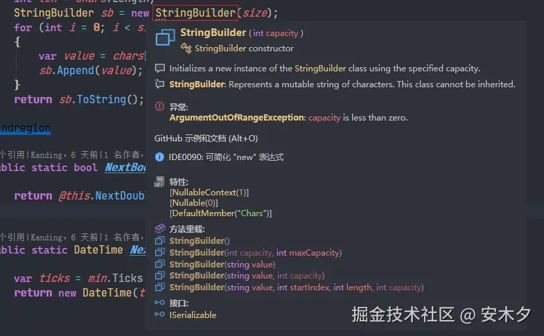 - 代码提示增强,如下图,更丰富、更好的布局。还有方法重载列表(这个非常好用),继承的接口,特性信息等。