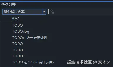 代码中一些TODO代办工作注释,可以可视化管理,【视图】>【任务列表】,快捷键:Ctrl + \ + T。