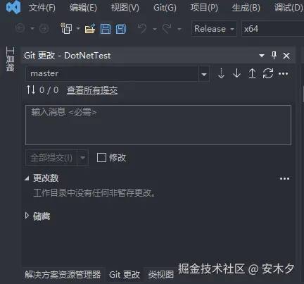 VS自带的Git管理功能还是比较强大,常用场景都覆盖了,基本不需要再安装其他Git的GUI工具了。