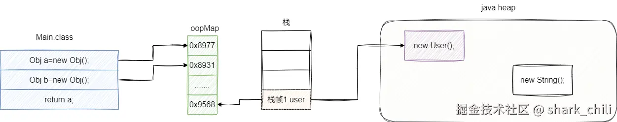 hotSpot就会基于类的偏移量信息计算出来并缓存。 JIT阶段也会在特定的时机(这一点后续会详细说明)计算出栈或寄存器中的那些位置是引用,并将其缓存。