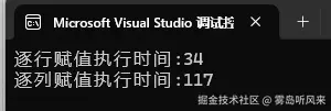 Console.WriteLine($"逐行赋值执行时间:{sw.ElapsedMilliseconds}");