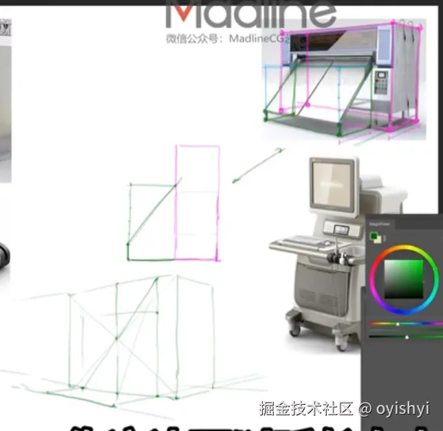 当有些分割线画完之后,就会很容易地去把画面中的形状给标定出来,从而更好地画准。