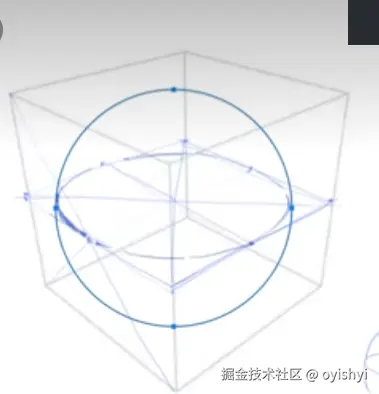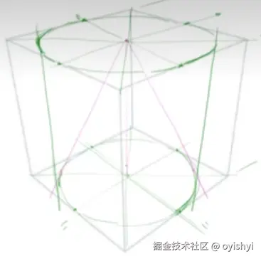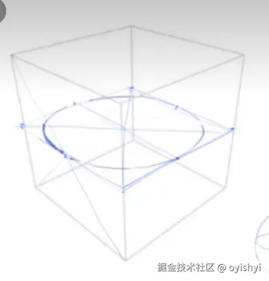 画出盒子后,找到四边的中点,连起来就是圆了。当然有更精确的办法,但是不需要,用平滑的曲线连起来这 4 个点就行。随着越画越多,这个圆会越来越准的。