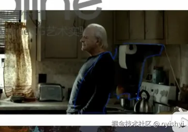 我们要把一个图看成色块,不要看成结构。比如说下面这个图,这个人的衣服后面和厨房暗处基本混在一起了,那就归纳成一个色块。同理厨房上面的柜子,正对墙的柜子和右边墙的柜子中间虽然有一点阴影分开,但基本上也可以归纳为同一个色块。像这样的归纳方式,族中可以把一张图分为简单明确的几个色块的组合。