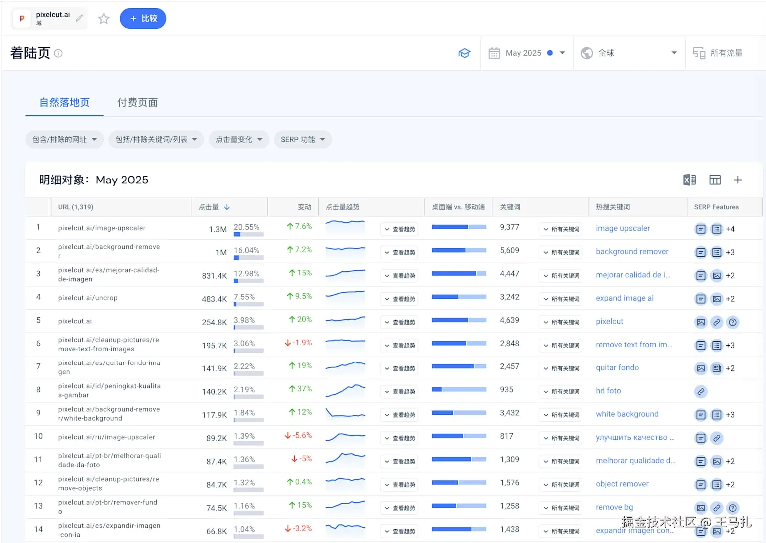 66.35%的流量来自有机搜索,这说明什么?说明他们在SEO上下了真功夫。