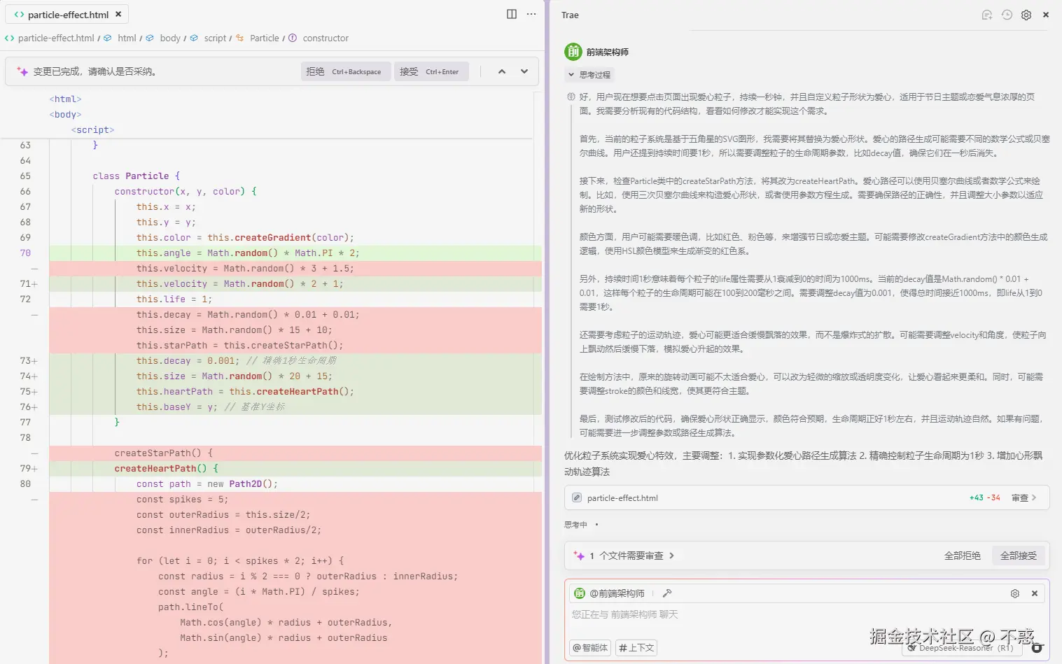 在 Trae 的加持下,这个功能可以变得更加灵活、智能、可配置,甚至可复用。只需一句指令,就能让你的页面炸得炫酷而不扰人,活泼但不花哨,实用又富有美感。