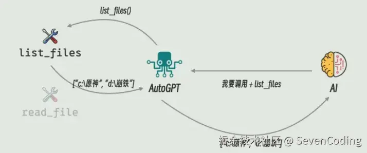 如果你想让AutoGPT帮你管理电脑里的文件,那你得先写好一些文件的管理函数,比如说 list_files 用来列目录, read_files 用来读文件等等等等。然后你把这些函数以及它们的功能描述、使用方法,注册到AutoGPT中。