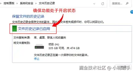 内存卡数据恢复方法五:文件历史记录