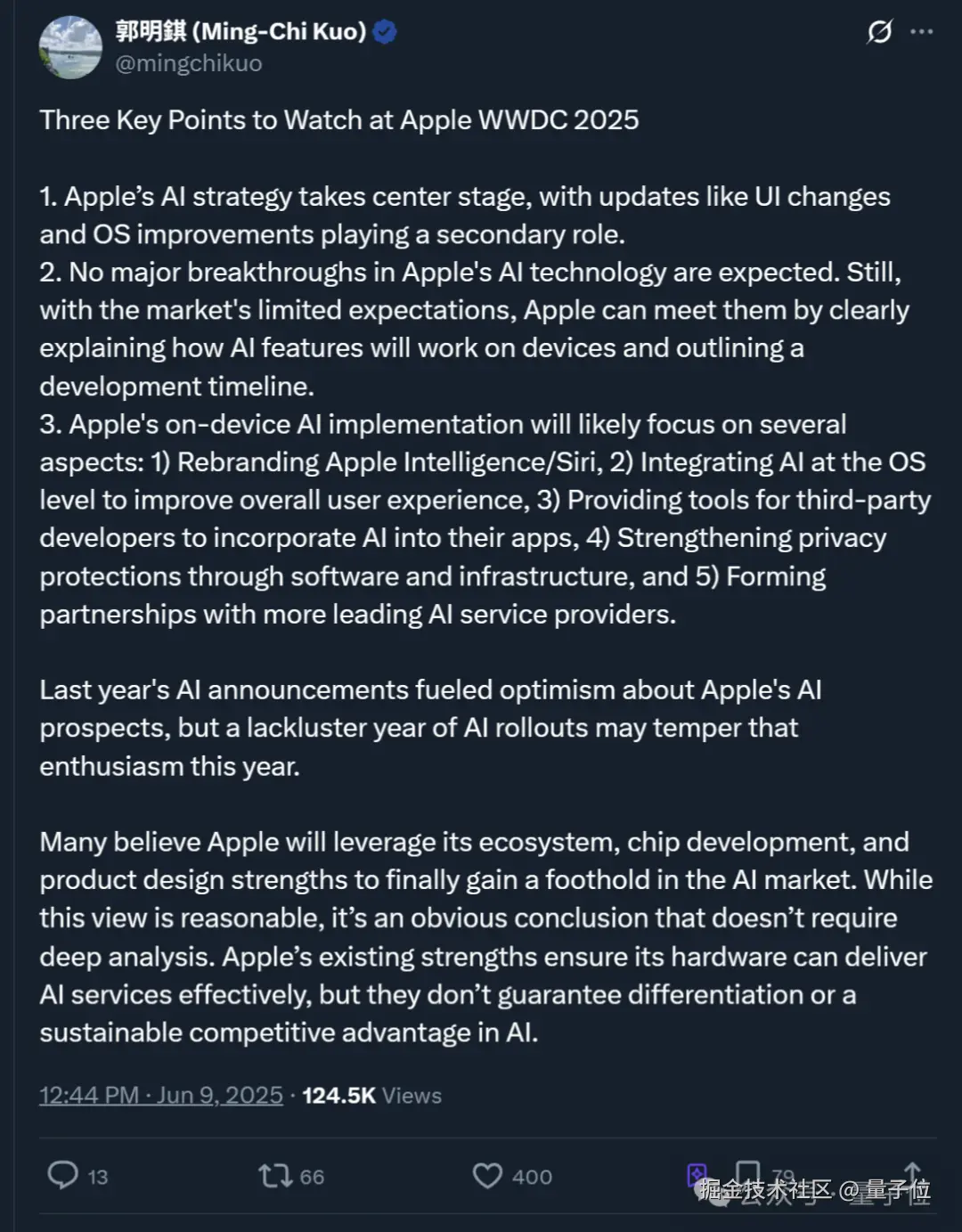 知名分析师郭明錤也对苹果的这场发布会做了一个总结,经概括如下: