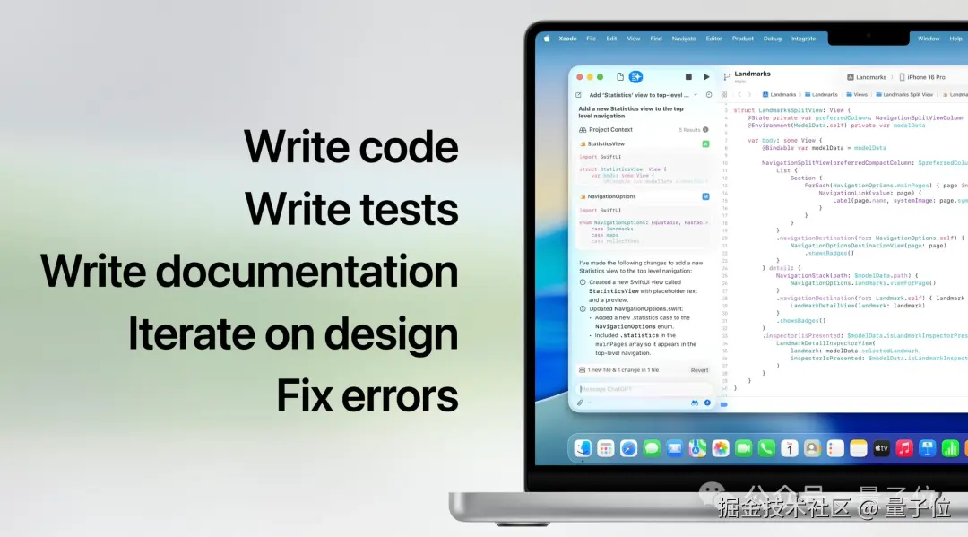 借助 Xcode 26,开发人员可以将 AI 模型直接连接到他们的编码流程中,用于编写代码、测试和文档,以及迭代设计和修复错误等等。