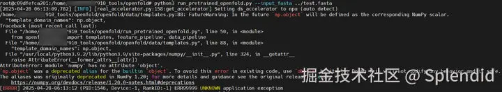 原因:openfold中使用了np.object的方式,而新版本numpy已不使用此写法