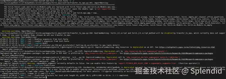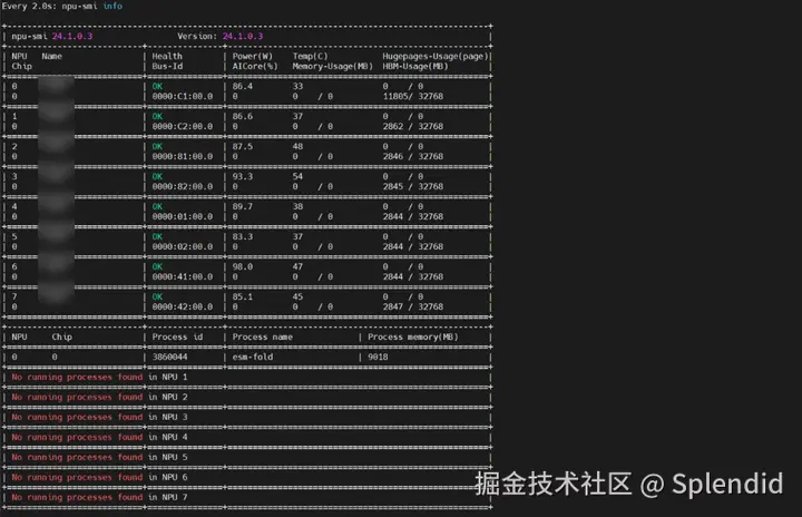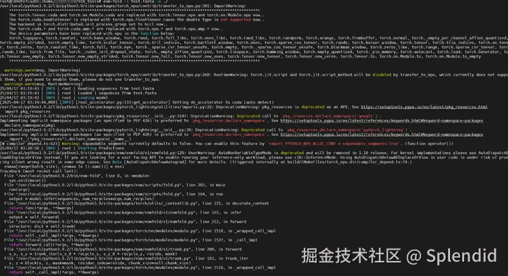 此时虽然还有报错,但已经能看到esfold的npu显存占用了