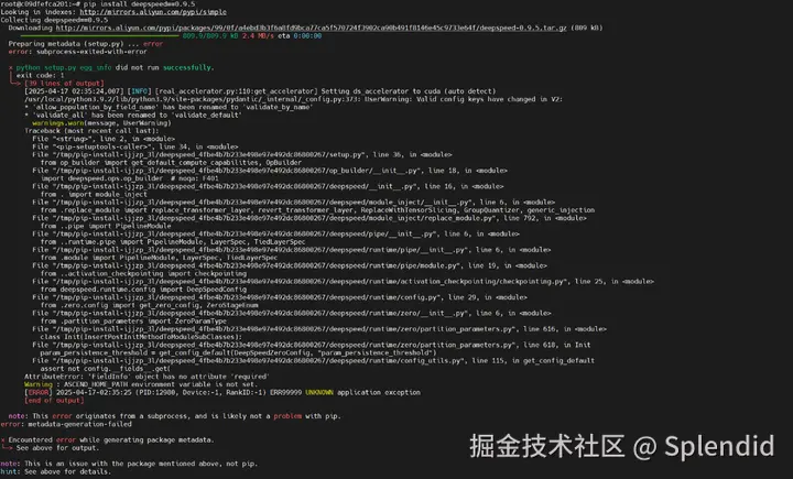 报错deepspeed 0.9.5 与新版 Pydantic(V2+)不兼容