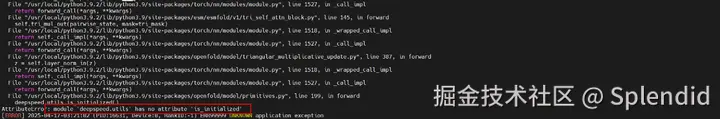 报错AttributeError: module 'deepspeed.utils' has no attribute 'is_initialized' , 原因是由于 openfold 代码调用了旧版 deepspeed 的 api,而新版 deepspeed 中该api 已被移除。