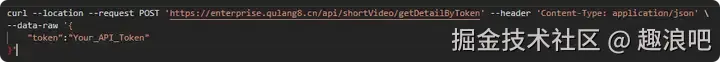 curl --location --request POST 'https://enterprise.qulang8.cn/api/shortVideo/getDetailByToken' --header 'Content-Type: application/json' \