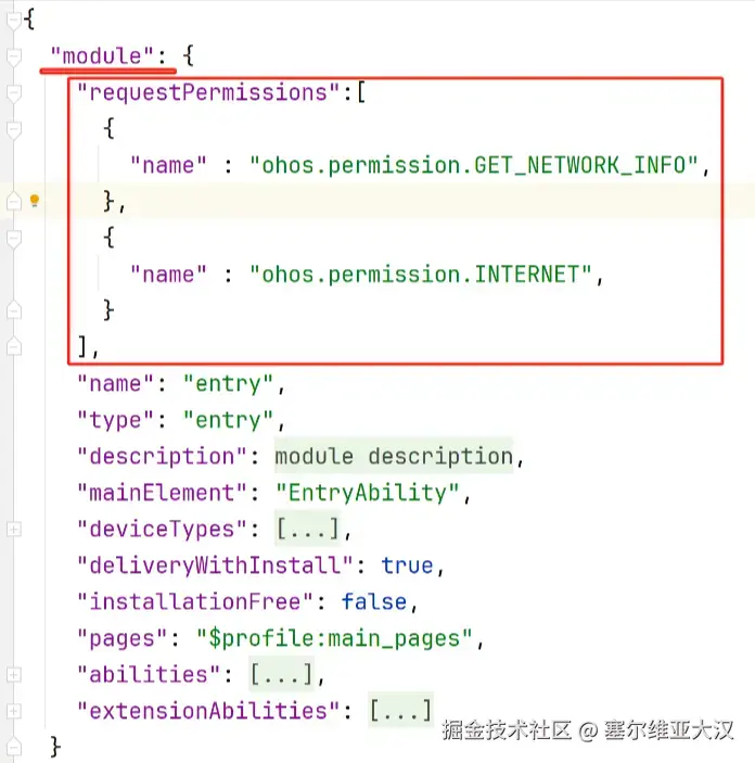 1.2 进入文件module.json5,在【module】的下一级,加上: