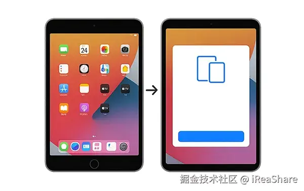 第 2 步: “快速启动”屏幕将出现在您的旧 iPad 上,提供使用您的 Apple ID 设置新 iPad 的选项。在旧 iPad 上点击“继续”。您的新 iPad 上将会出现一个动画。
