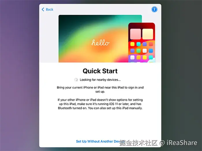 快速启动是 Apple 推出的一项便捷功能,可让您在初始设置过程中将数据直接从一台 iOS 或 iPadOS 设备无线传输到另一台设备。不过,此功能适用于 iPadOS 13 或更高版本。如果您的旧iPad不支持,请使用其他方式。