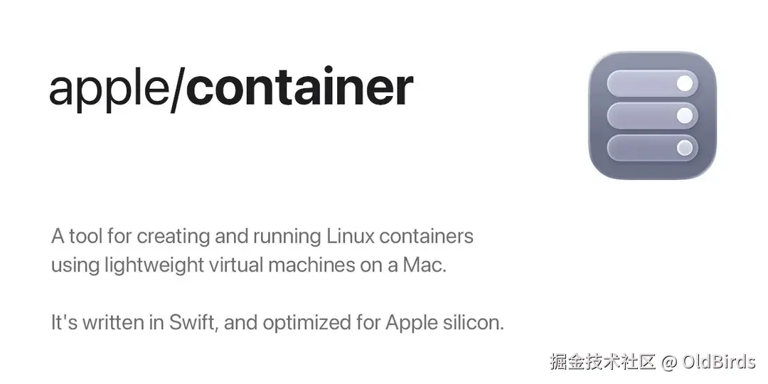 apple/container 是 Apple 为 Mac 用户提供的一种官方容器化工具,旨在利用 Apple Silicon 的硬件优势,在 Mac 上创建和运行 Linux 容器。该工具使用 Swift 语言编写,不仅专为 Apple Silicon 优化,还展示了 Swift 在系统级工具开发中的潜力。这种官方支持的解决方案填补了 Mac 生态系统中容器化工具的空白,为开发者提供了一个原生的选择。
