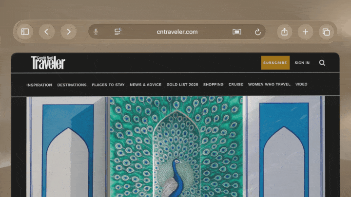 在 Safari 浏览器中,网页从屏幕顶部流畅过渡到底部,让你能看到更多页面内容,同时保留刷新和搜索等常用功能。