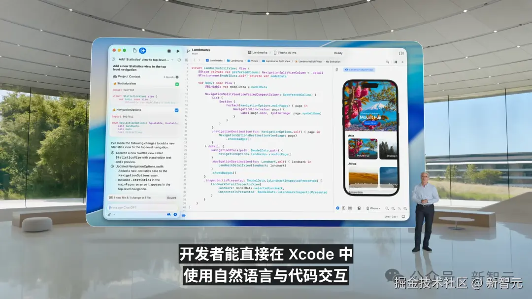 Foundation Models 框架加入工具套装,让开发者能利用设备端智能;Xcode 26 则引入 ChatGPT 等大语言模型,提供编码工具和其他智能功能。