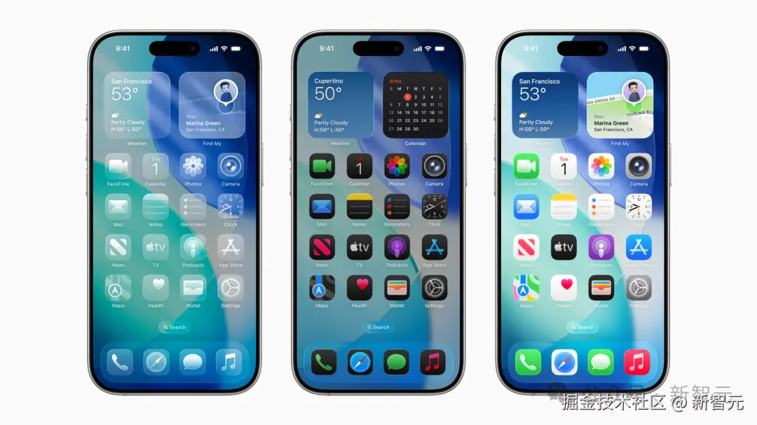 「液态玻璃」还为应用图标和小组件带来了新的定制选项,包括令人惊艳的透明外观。