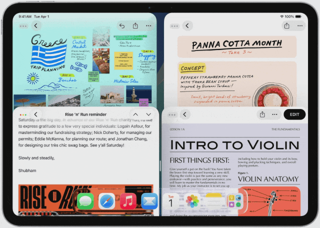窗口平铺功能专为 iPad 的独特性能而设计,你只需轻轻一扫,即可自如排列窗口。